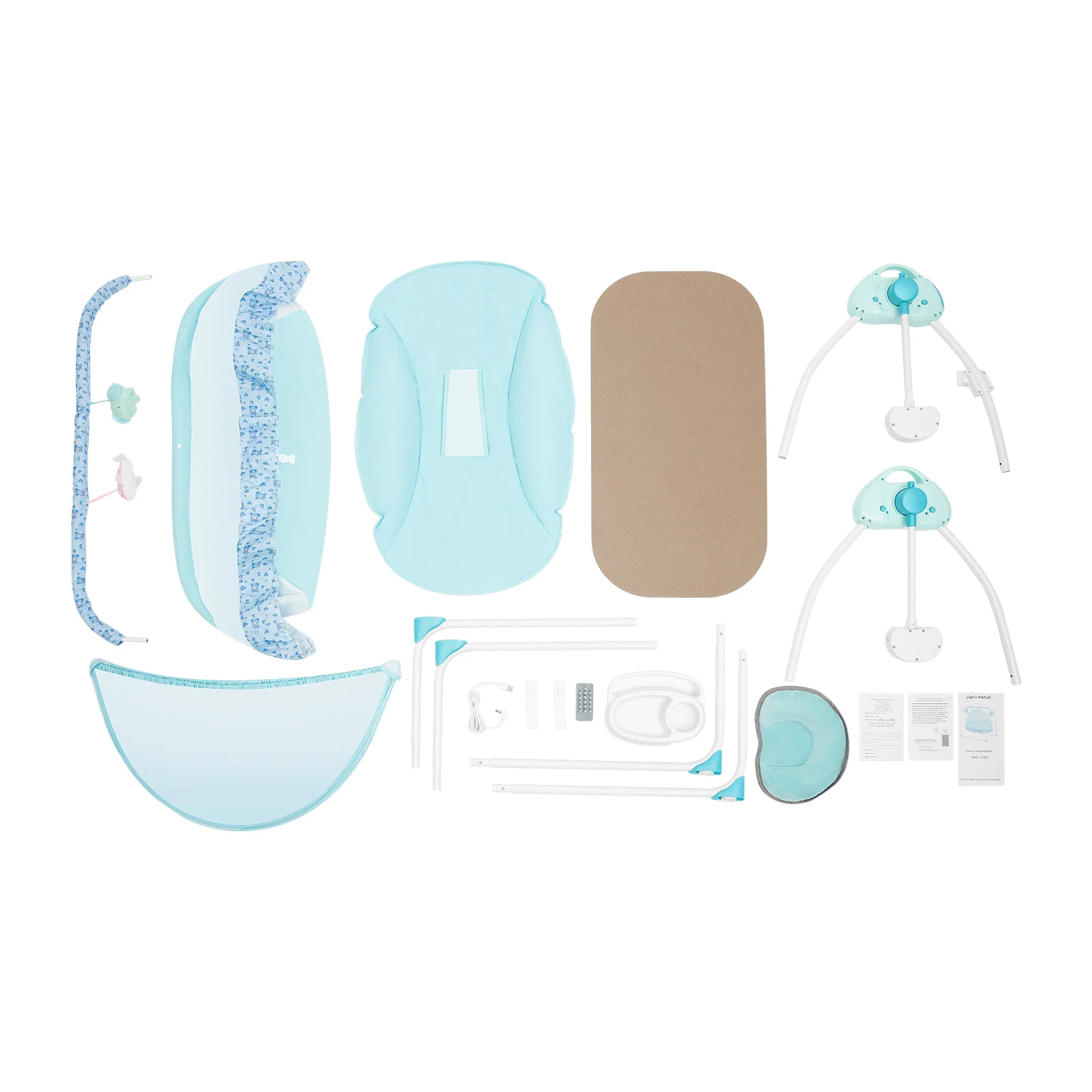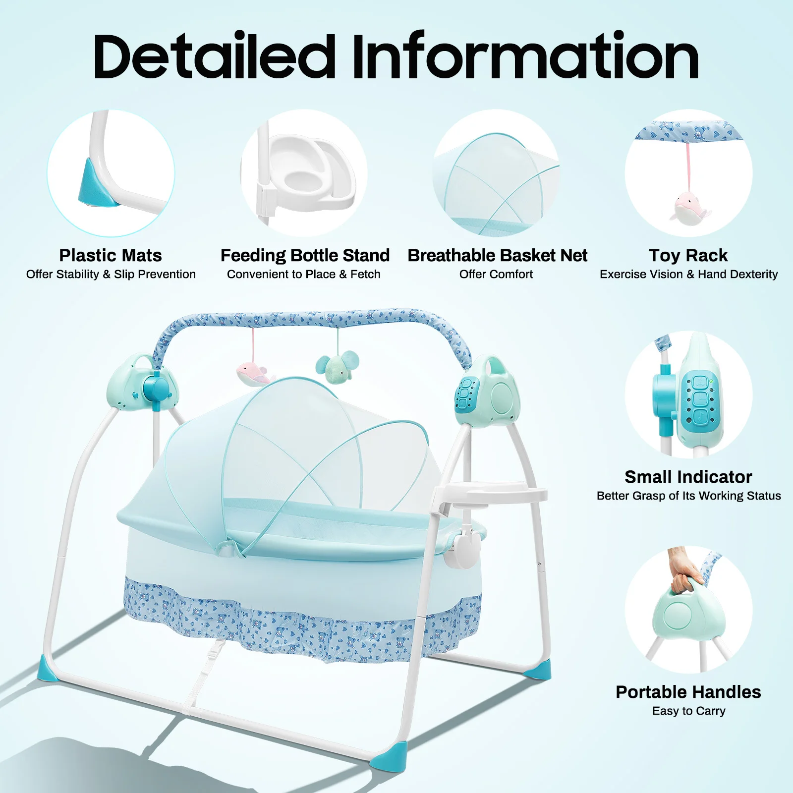 Our electric cradle is an innovative tool specifically for babies, aiming to provide a comfortable and safe environment for sleeping. It’s a good helper for you to set your hands free when coaxing your baby to sleep, quieting the crying baby down, or having little time for yourself. Also, the detachable and foldable design makes it easy to store and wash. Such a practical and helpful parenting tool for babies you can’t miss!